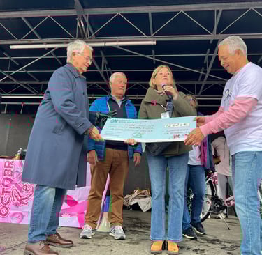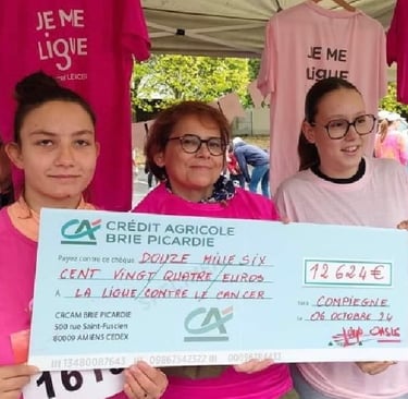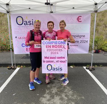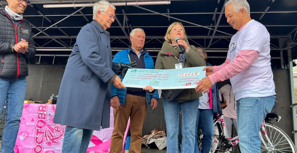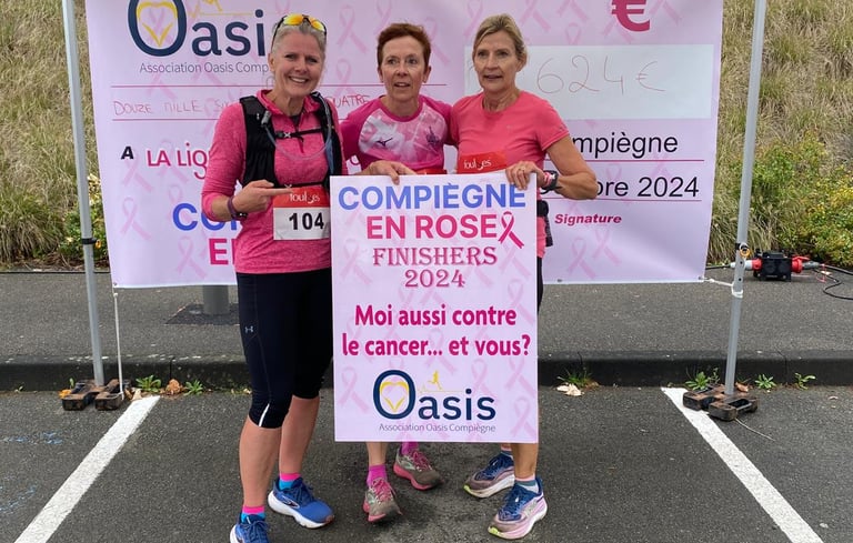 L'association Oasis organisait dimanche 6 octobre 2024 la première édition de Compiègne en Rose, pour sensibiliser au cancer du sein dans le cadre d'Octobre Rose. Plus de 1500 personnes ont participé à la course de 7 ou 14km ou à la marche de 7km. A cette occasion 12.624€ ont été remis à la Ligue contre le cancer des Hauts-de-France soit la totalité de la recette. Le chèque a été remis symboliquement au docteur Elisabeth Carola, présidente de la ligue des Hauts-de-France
